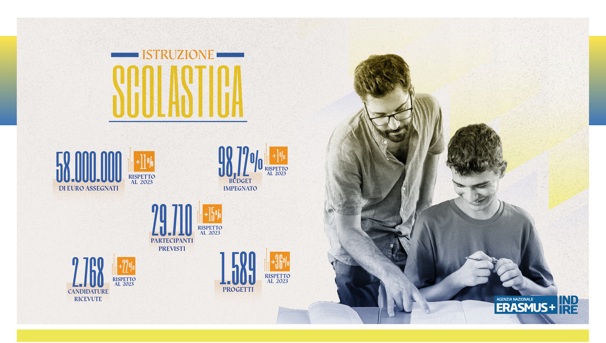 Il rapporto offre inoltre una panoramica di tutte le iniziative promosse dall’Agenzia nel corso dell’anno per la promozione, valorizzazione e disseminazione del programma Erasmus+ in Italia.