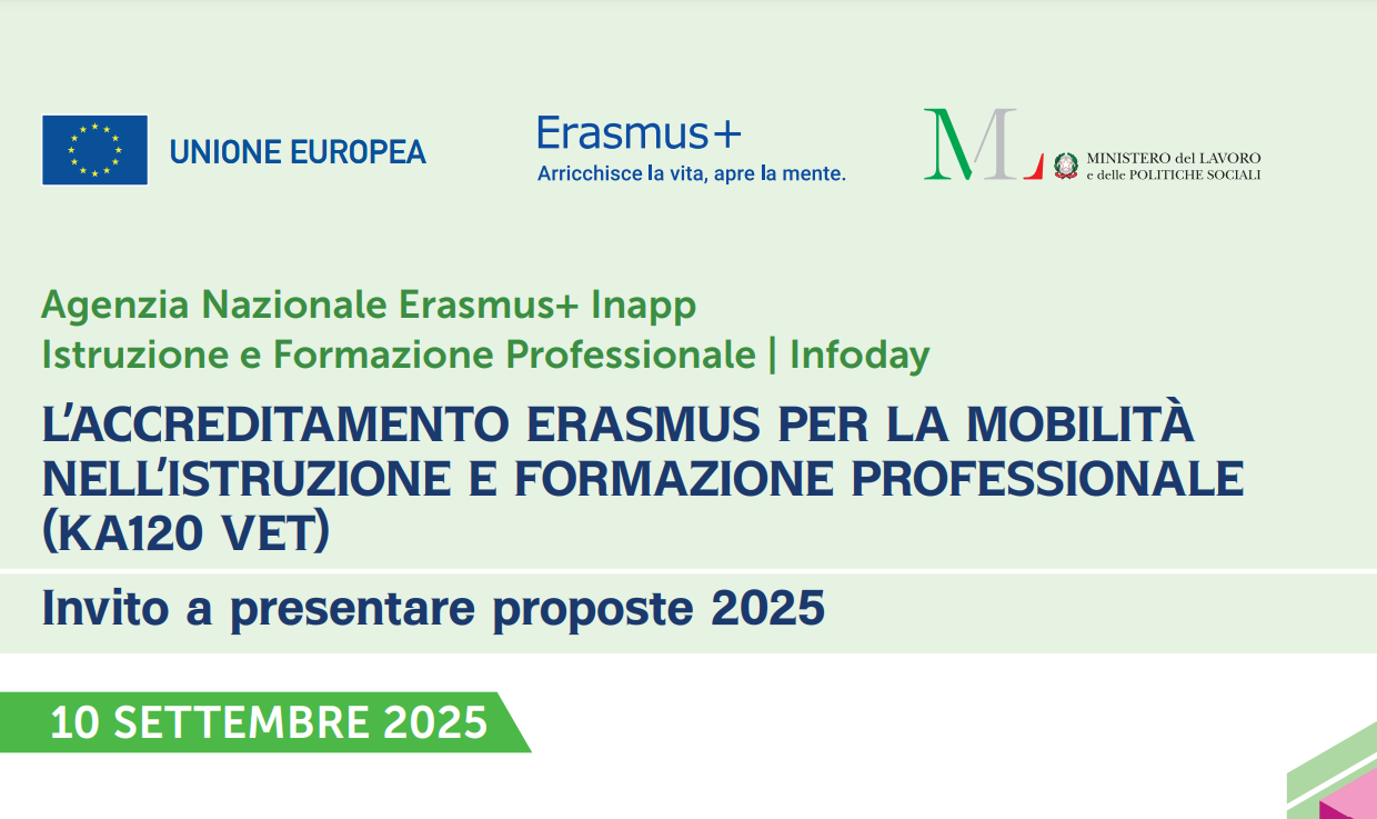 L’Agenzia Erasmus+ INAPP organizza un webinar dedicato all’Accreditamento per progetti di Mobilità nel settore Istruzione e formazione professionale (Azione KA120), in vista della prossima scadenza, il 1° ottobre 2025.