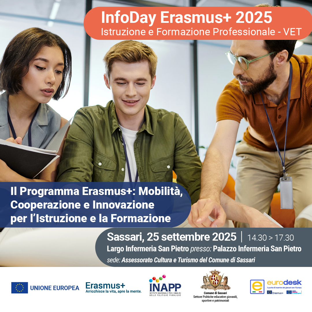 L’Agenzia Erasmus+ INAPP ed Eurodesk Italy, in collaborazione con il Centro Eurodesk dell’Informagiovani del Comune di Sassari – Politiche educative giovanili, sportive e patrimoniali promuovono un seminario di in/formazione finalizzato ad approfondire gli aspetti principali della progettazione nell’ambito delle varie azioni del programma Erasmus+| Istruzione e Formazione Professionale.