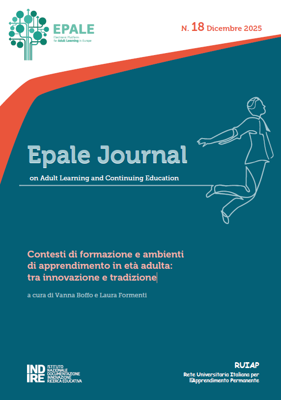 Il nuovo numero della rivista scientifica EPALE Journal raccoglie contributi teorici, ricerche e pratiche sul tema “Contesti di formazione e ambienti di apprendimento in età adulta: tra innovazione e tradizione“, proponendo una riflessione ampia che tiene conto di contesti, spazi e momenti di vita nei quali l’apprendimento prende forma in modalità diverse e lungo l’intero arco della vita. Gli articoli raccolti nelle tre sezioni (Contributi teorici, ricerche, pratiche) si occupano del rischio rappresentato dal vuoto educativo contemporaneo, delle linee di sviluppo della ricerca educativa in riferimento a dimensioni quali la cura, l’impresa, il lavoro, il carcere, la sostenibilità culturale, e analizzano pratiche estetiche nei luoghi di cura, pratiche innovative come l’intelligenza artificiale intesa come “terzo educatore” e l’uso dello spazio nella formazione universitaria.