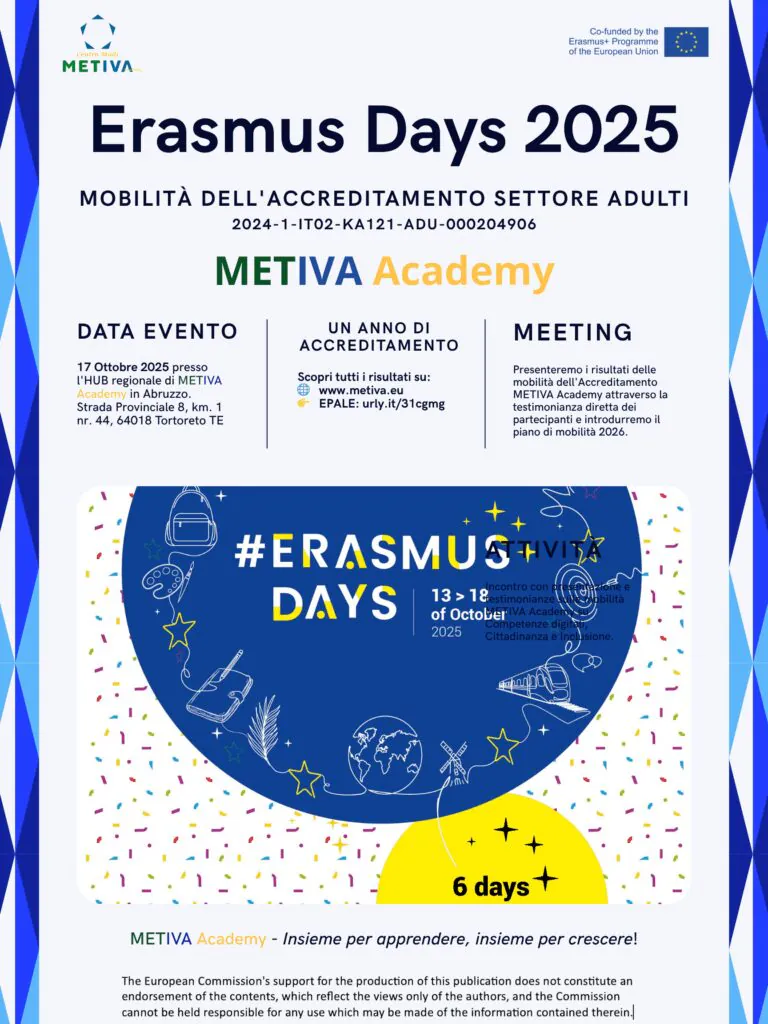 17 ottobre (ore 15.00 -18.00), Tortoreto (TE): Insieme per apprendere: le esperienze Erasmus+ di Metiva Academy