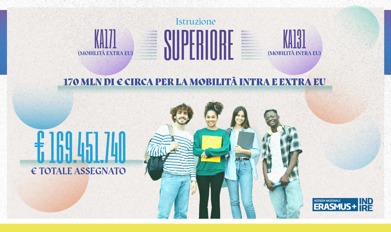 L’impegno economico complessivo assegnato per le due azioni è pari a € 169.451.740 e si riferisce alla mobilità di staff e studenti.