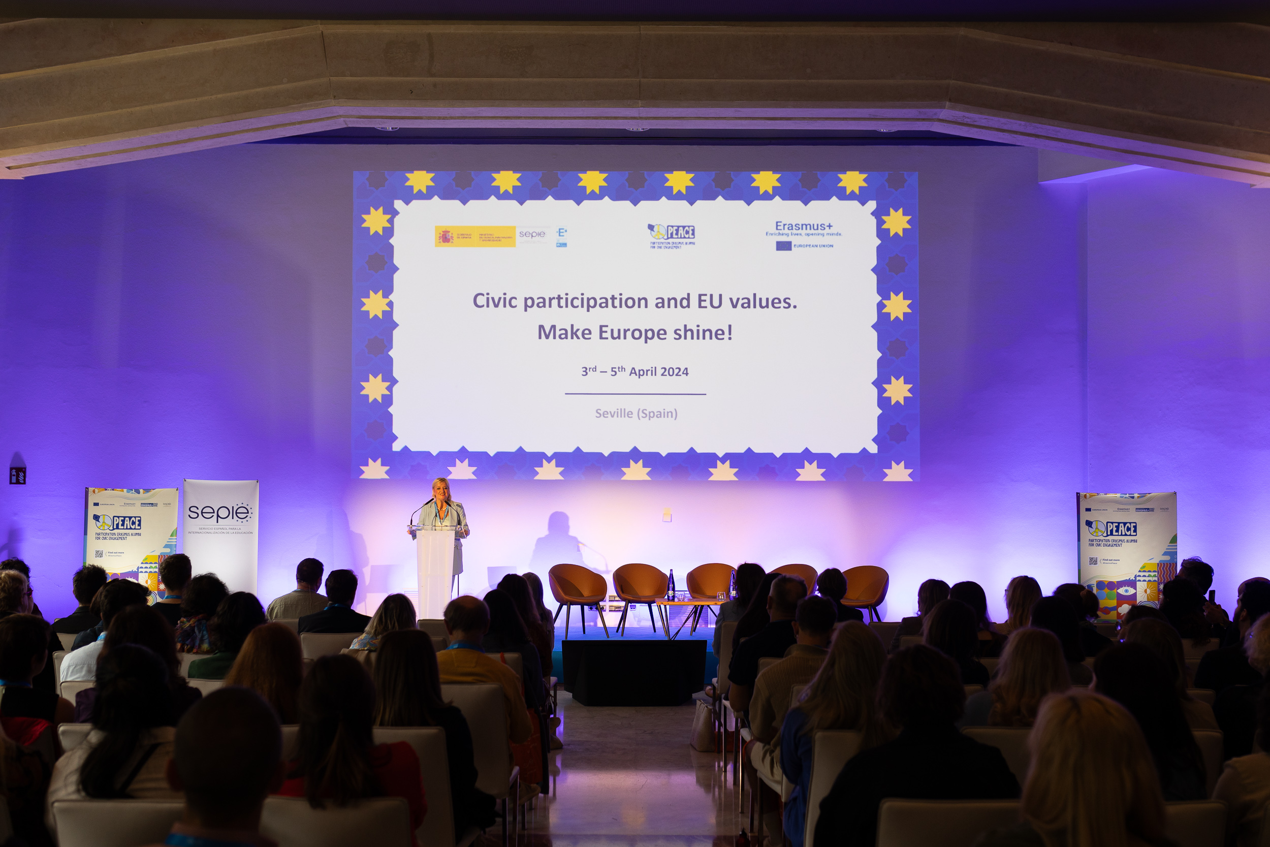 L’impegno dell’Agenzia nazionale Erasmus+ INDIRE a Siviglia si è poi concluso con un ulteriore appuntamento lo scorso 6 aprile, dove davanti al pubblico dell’Erasmus Generation Meeting è stata presentata l’iniziativa PEACE, anche tramite uno stand dedicato per la diffusione dei suoi progetti focalizzati sul civic engagement, oltre alla promozione del questionario internazionale rivolto ai giovani in vista delle prossime elezioni europee.