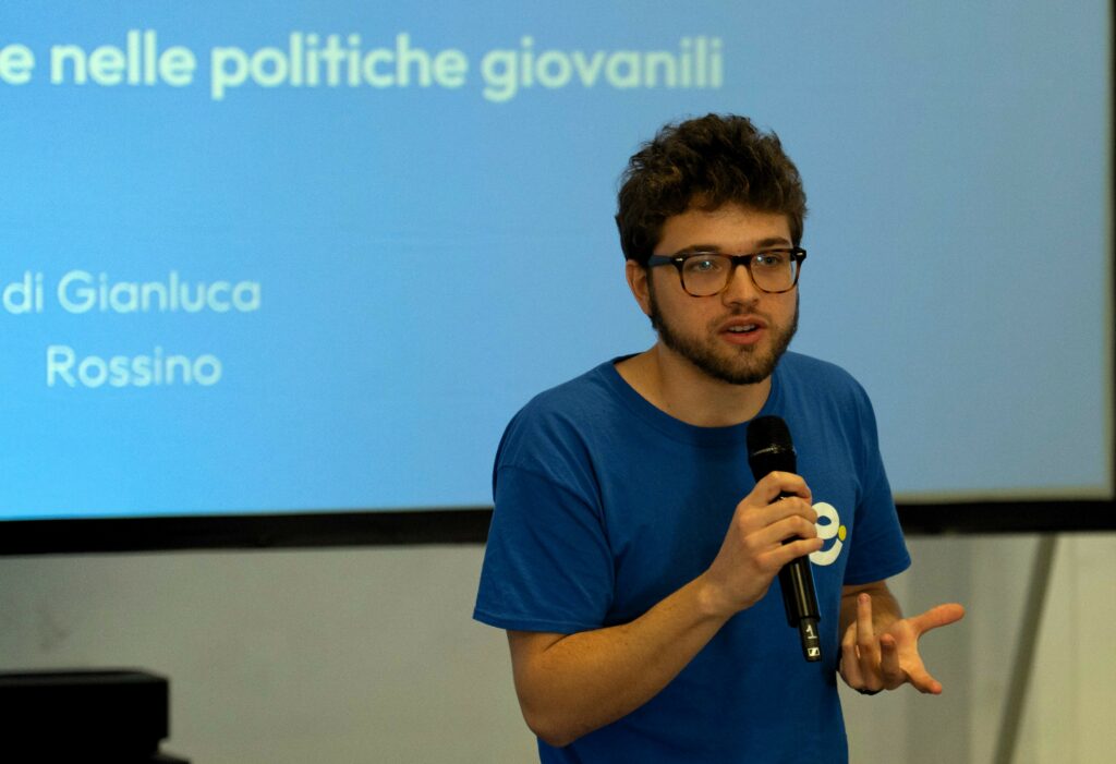 Nella seconda parte della mattinata, ha dato il via al lavoro di confronto e networking, il workshop dal titolo “I programmi europei come motore per la partecipazione giovanile”, a cura di Gianluca Rossino, membro del Consiglio Direttivo di Europiamo ETS, community di giovani ed enti che condividono la visione di un’Europa più accessibile, partecipativa e sostenibile. L’intervento era incentrato su “policy & practice” in relazione alle politiche giovanili, con riferimento agli European Youth Goals e ha posto alcuni punti di riflessione a partire da Erasmus+ come “ecosistema di partecipazione”: non solo mobilità transnazionale, ma opportunità per realizzare laboratori di democrazia, sperimentare la co‑decisione e il dialogo strutturato con le istituzioni. Rossino ha portato la discussione sul ruolo specifico delle politiche giovanili, che collegano i progetti agli obiettivi strategici (EU Youth Strategy, Youth Goals, piani locali giovani) e il ruolo delle reti sul territorio come “moltiplicatori” che traducono opportunità europee in percorsi locali di cittadinanza attiva.
