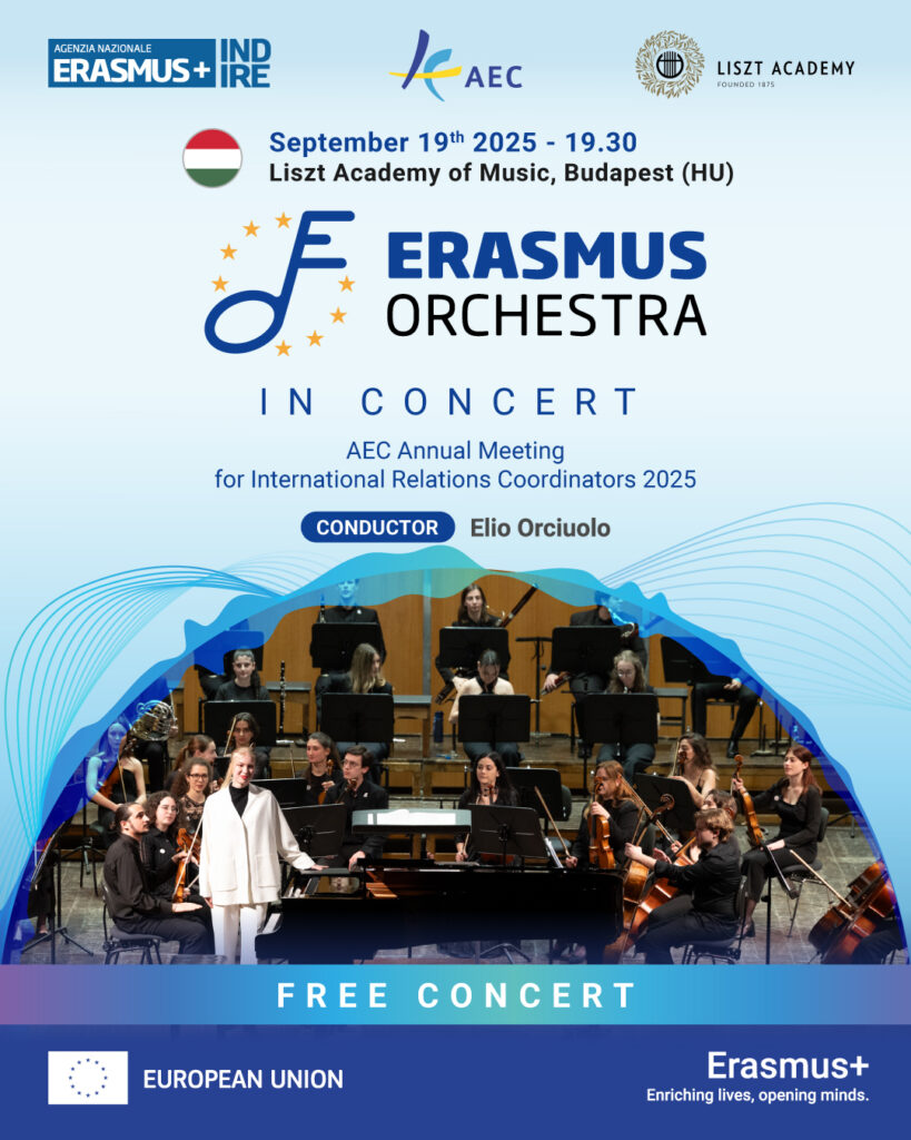 Come momento culturale dell’incontro, l’Erasmus Orchestra presenterà un concerto speciale aperto al pubblico, la sera del 19 settembre (alle 19:30) nell’auditorium dell’Accademia Musicale Liszt. L’esibizione sarà un’occasione di festa che celebra i valori dello scambio culturale, della diversità e dell’eccellenza artistica, elementi fondanti del programma Erasmus+.