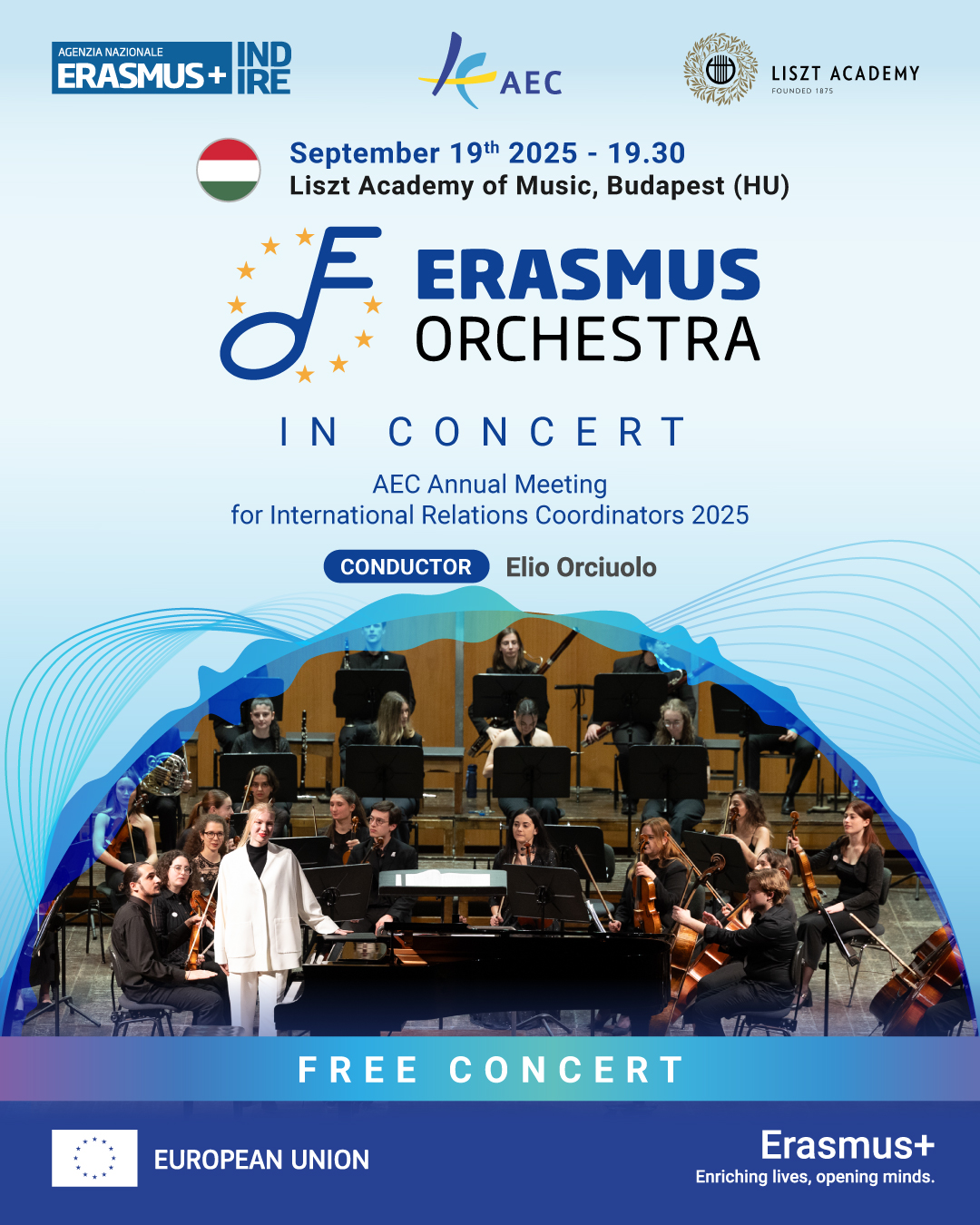 Dal 17 al 19 settembre 2025 si terrà a Budapest (HU), presso la prestigiosa Accademia Musicale Liszt, l’Incontro Annuale dei Coordinatori per le Relazioni Internazionali dell’Associazione Europea dei Conservatori (AEC). Questo appuntamento annuale riunisce i rappresentanti dei conservatori di tutta Europa per condividere buone pratiche, rafforzare la collaborazione internazionale e promuovere nuove opportunità per studenti e istituzioni nell’ambito del programma Erasmus+.
