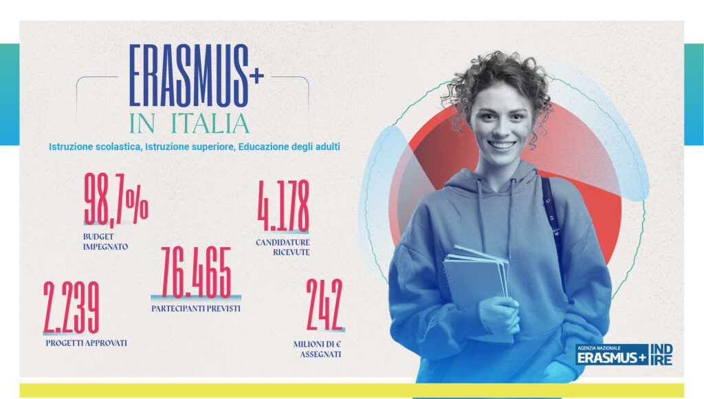 Con circa 76.500 partecipanti complessivi e un investimento di 242 milioni di euro nei tre settori l’Italia si conferma tra i primi paesi europei per persone coinvolte nelle attività di mobilità e cooperazione del programma europeo.