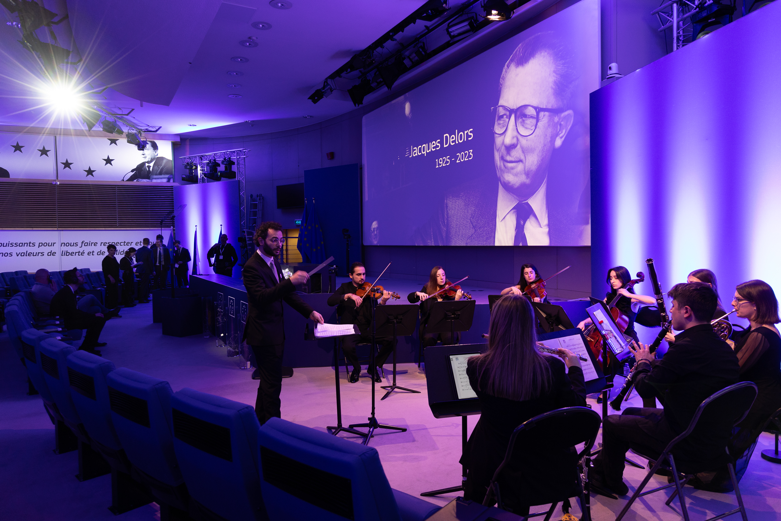 Un momento particolare dell’evento è stato il contributo straordinario di un ensemble musicale di 9 giovani musicisti dell’Orchestra Erasmus, provenienti da 8 Conservatori europei. Gli studenti, selezionati dall’Agenzia nazionale Erasmus+ INIDRE, hanno reso omaggio a Delors attraverso esibizioni musicali toccanti, intervallando le commemorazioni con brani che rappresentano la ricchezza e la diversità culturale del continente.