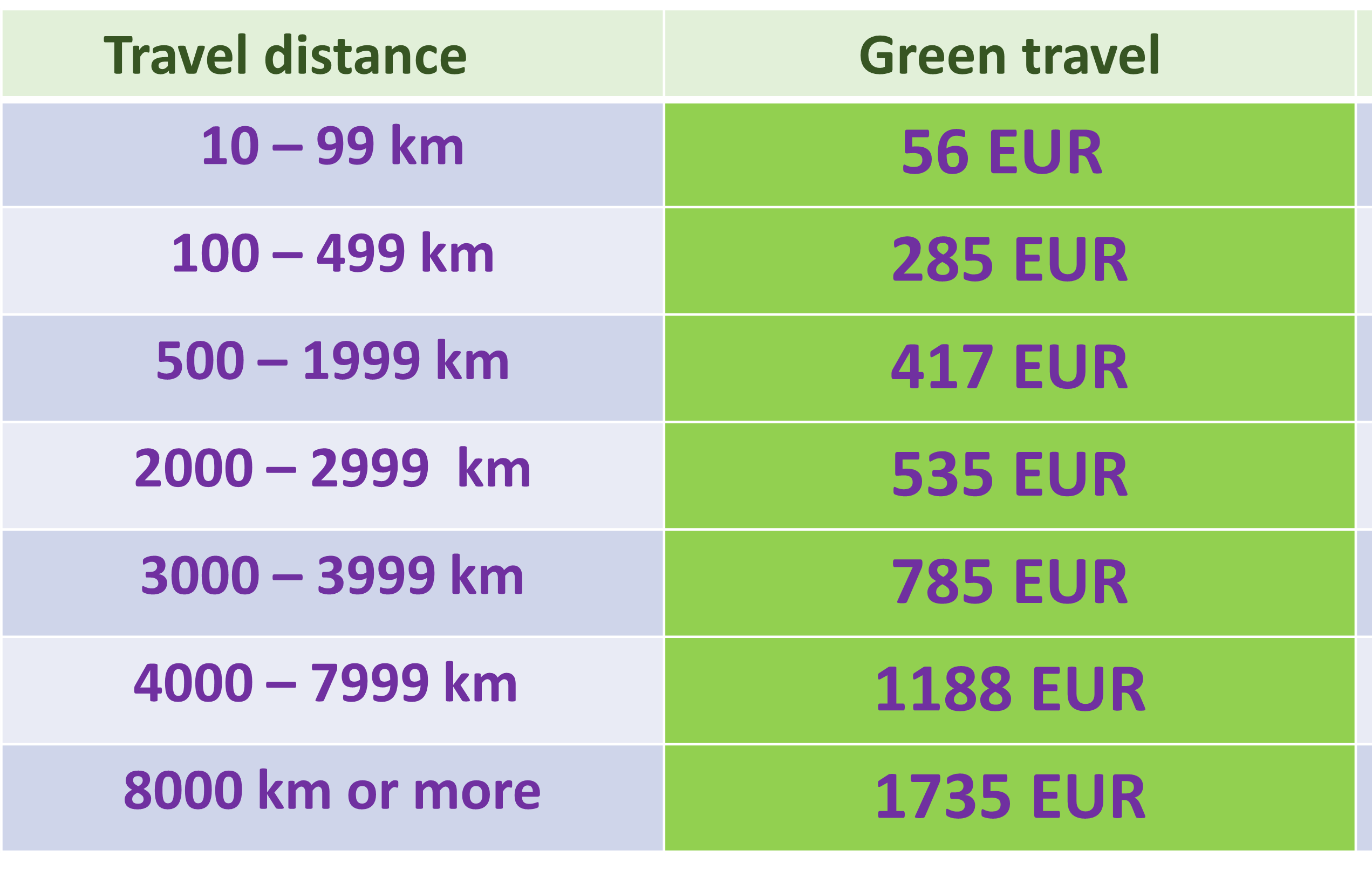 Secondo le indicazioni della Commissione, al di sotto dei 500 km i partecipanti utilizzano mezzi di trasporto a basse emissioni, senza eccezioni.