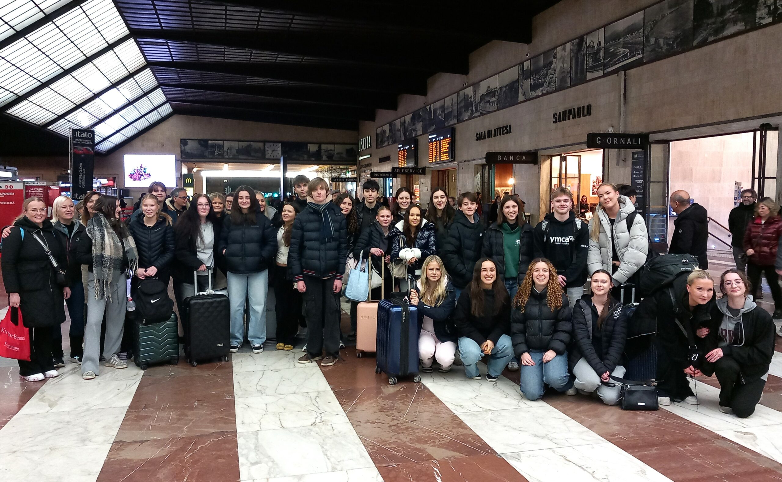 Da Oulu a Firenze in treno: 15 studenti e tre docenti della Laanilan Lukio di Oulu, hanno deciso di usufruire del contributo speciale previsto dal Programma Erasmus+ per i viaggi green. “Il viaggio è stato un modo di fare la storia” come ha raccontato la docente che ha proposto l’idea alla scuola, un’avventura cha ha permesso di attraversare l’Europa da nord a sud, passando per Helsinki, Stoccolma, Copenhagen, Amburgo, Zurigo, Milano e si è conclusa lunedì 9 febbraio alle 19.04, quando il treno è arrivato alla Stazione di Firenze Santa Maria Novella e il gruppo dei finlandesi è stato accolto da studenti, genitori e insegnanti, tra l’imbarazzo iniziale e la gioia di un’esperienza nuova che inizia.