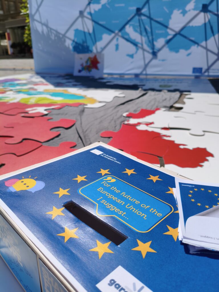 Un’altra attività, “Il futuro dell’Europa”, ha consistito in una scatola delle idee in cui i partecipanti di tutte le età hanno potuto condividere i propri pensieri, proposte e speranze per l’Unione Europea. Dai suggerimenti più audaci alle riflessioni personali più sentite, i messaggi hanno dato una dimensione ancora più significativa alla giornata di festa.